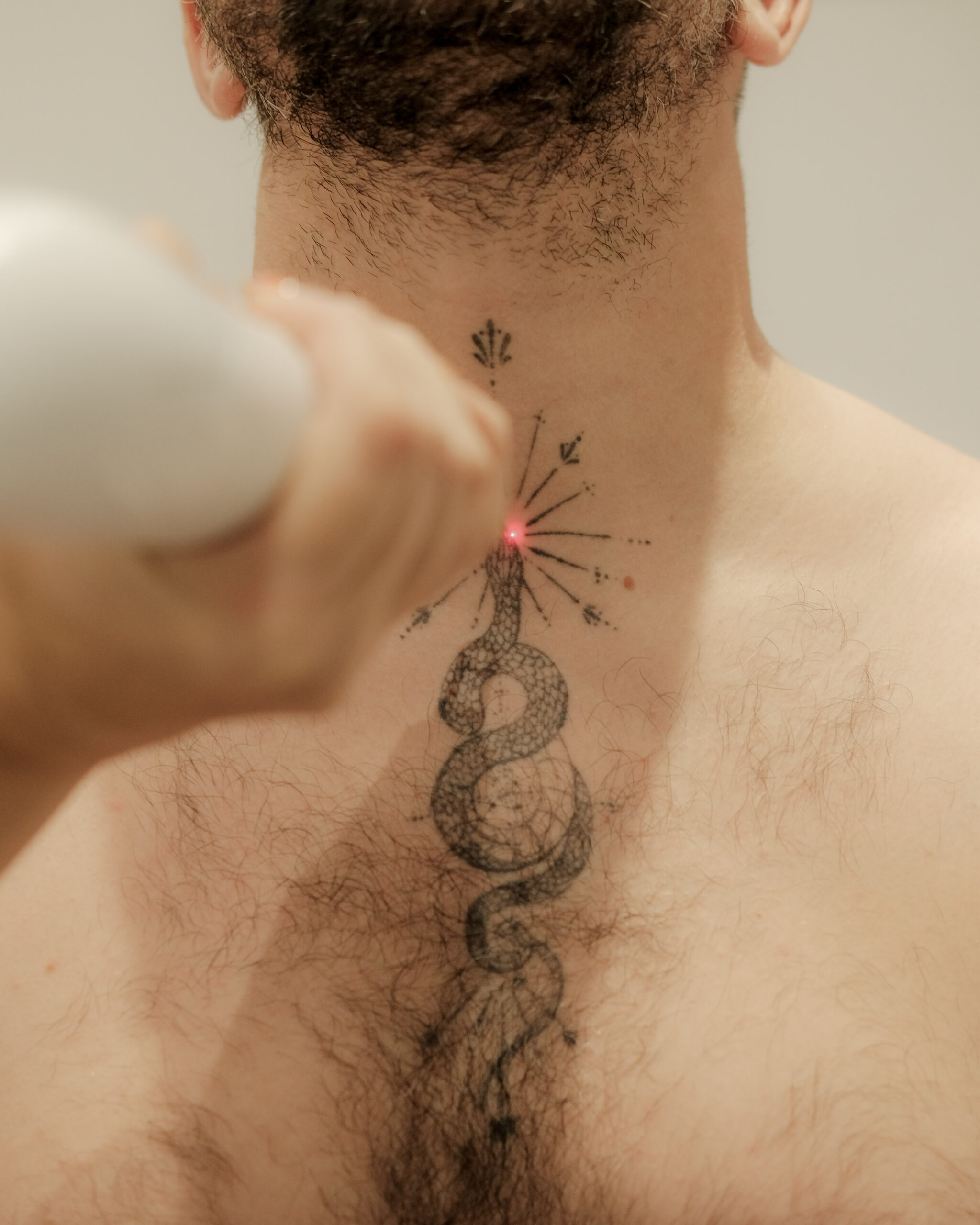 La couleur est fragmentée en microparticules, ensuite éliminées naturellement par le corps, tout en préservant les tissus environnants.